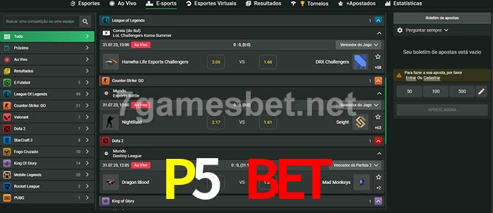 O P5 Bet oferece uma grande seleção de opções de apostas em e-sports com probabilidades competitivas
